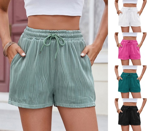 All'ingrosso personalizzabile primavera/estate nuove donne tinta unita pieghettate con coulisse alla moda pantaloncini Casual da donna sportivi corti